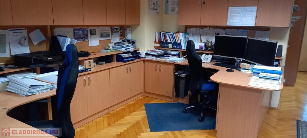 Az iroda három különálló, jól szeparált helyiségből áll, emellett külön konyha, fürdőszoba és WC is kialakításra került. Az erkély világos, kellemes munkakörnyezetet biztosít. A műanyag nyílászárók, a gázcirkó fűtés és a három darab klímaberendezés egész évben komfortos használatot tesznek lehetővé.