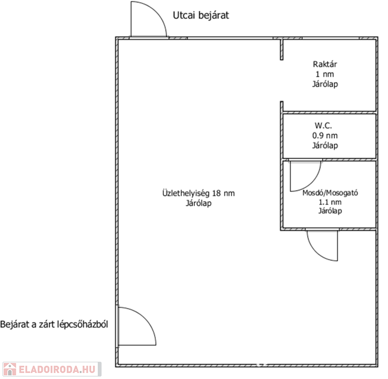 Az ingatlanban 18 nm eladótér, szociális blokk, valamint egy raktárhelyiség található.