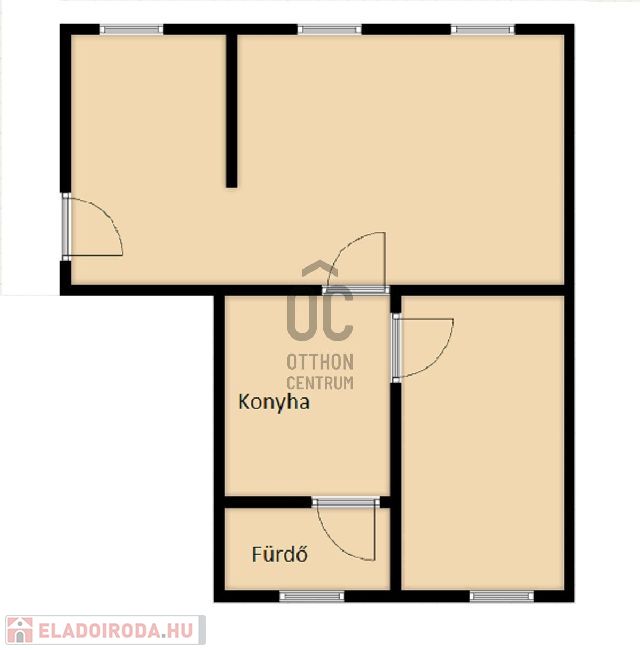 A kialakítása egy tágas és két kisebb helyiség, fürdőszoba, konyha