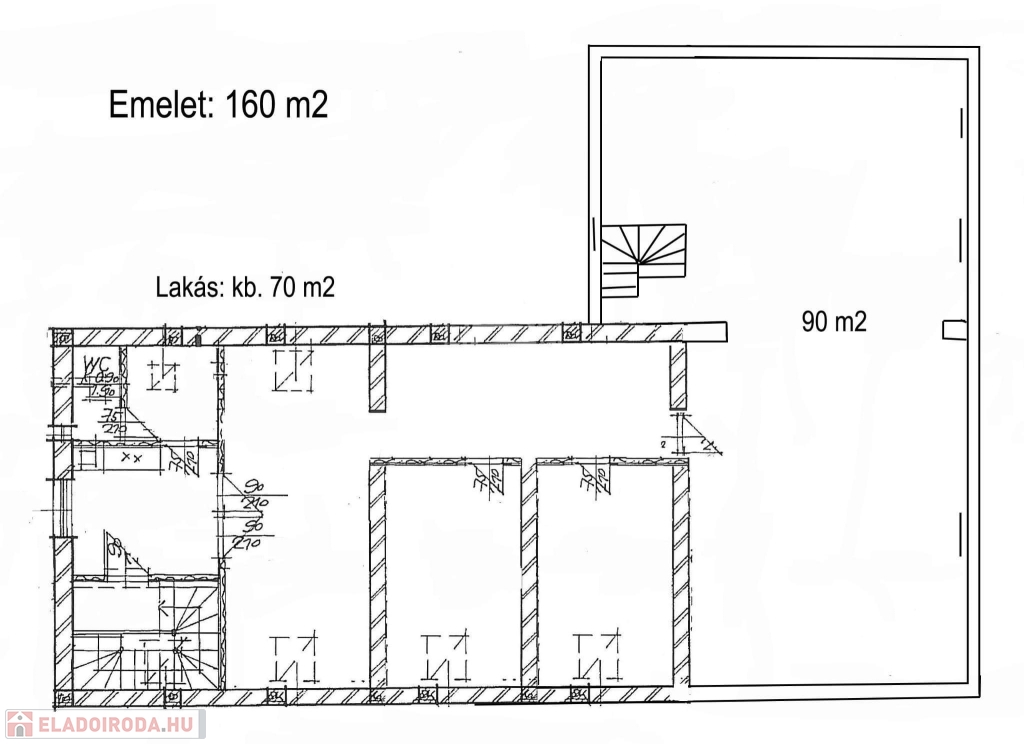 Az emeleten pedig egy 70 m2-es, 2 szobás lakás került kialakításra, ami bármikor kiadható, de irodaként is funkcionálhat.