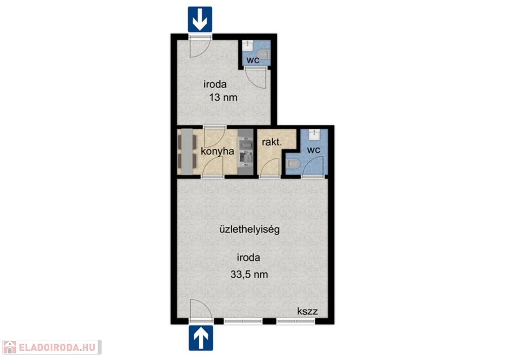 - Üzlethelyiség, iroda helyiség, raktár,2 szeparált WC.