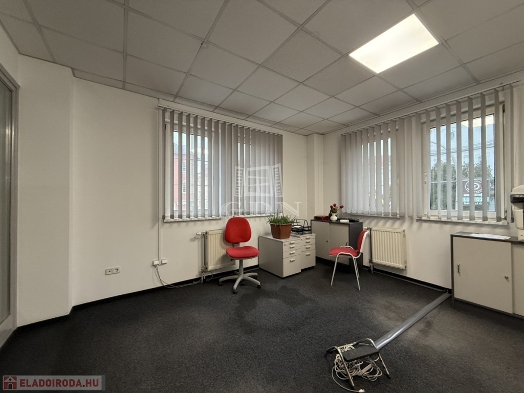 Elosztását tekintve eredetileg egy előtérből, három különálló irodából, egy kisebb raktárból, valamint konyha-étkezőből és mellékhelyiségből állt. Jelenleg két tágas, világos, egybenyitott irodatér és egy külön irodahelyiség alkotja.