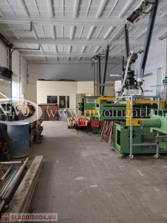 Az épület ipari betonnal (targoncázható) és greslappal fedett. Az ingatlan belmagassága 5,5 m és van ahol 7 m is. Ipari kapukkal ellátott.