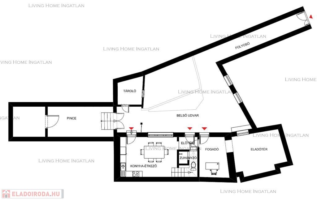 • Alapterület: fűtött belső tér 99 nm + 25 nm pince + 5 nm tároló + 45 nm hangulatos belső udvar.