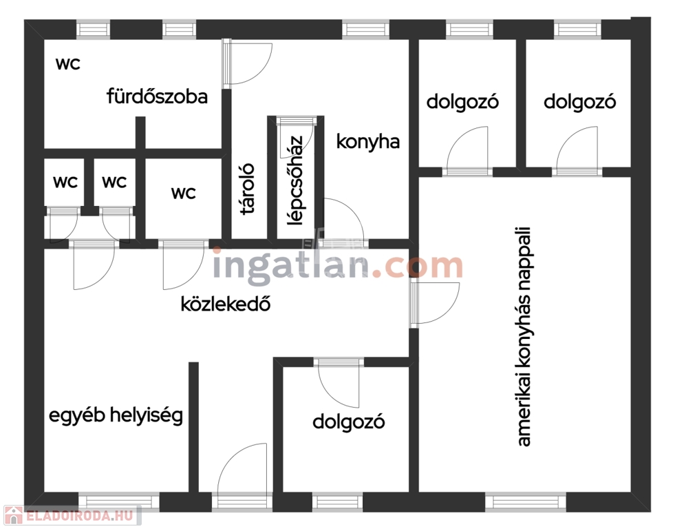 Nyílászárói hőszigetelt üvegezésű, műanyag-szerkezetű ablakok és bejárati ajtó. A beltéri ajtók faszerkezetűek.
