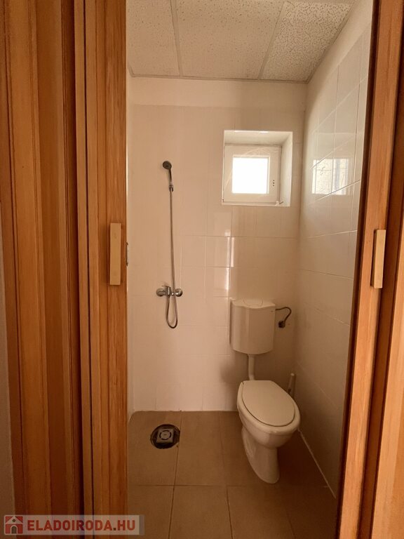Üzlet elosztása: egy nagy helység 71.87 nm, egy kisebb 8.74 nm (ez lehet konyha- mosogató), öltöző, zuhanyzó+ Wc. és egy Wc. kézmosóval.