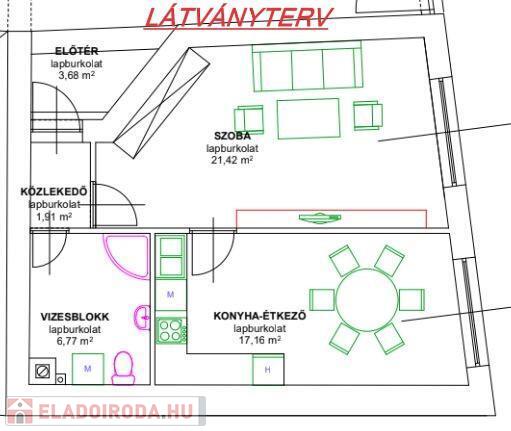 45 nm-es alapterület, amely 2 tágas helyiségből, egy előtérből és egy vizesblokkból áll.