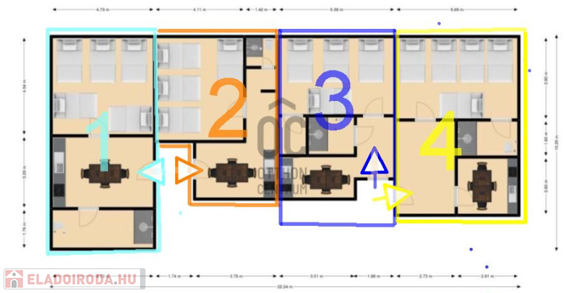 A vételárban a meglévő ügyfél kör ami 11 éve kialakult szintén a vételár tárgyát képezi és vele együtt a teljes üzemeltetéséhez tartozó : / Külön bejáratú lakások , amiből van 6 db apartman , 4 db 60 m2 -es= 240 + 25 + 35 m2 mind összesen 300 m2 / . összkomfortos lakások . a teljes berendezésekkel és szolgáltatókkal együtt .