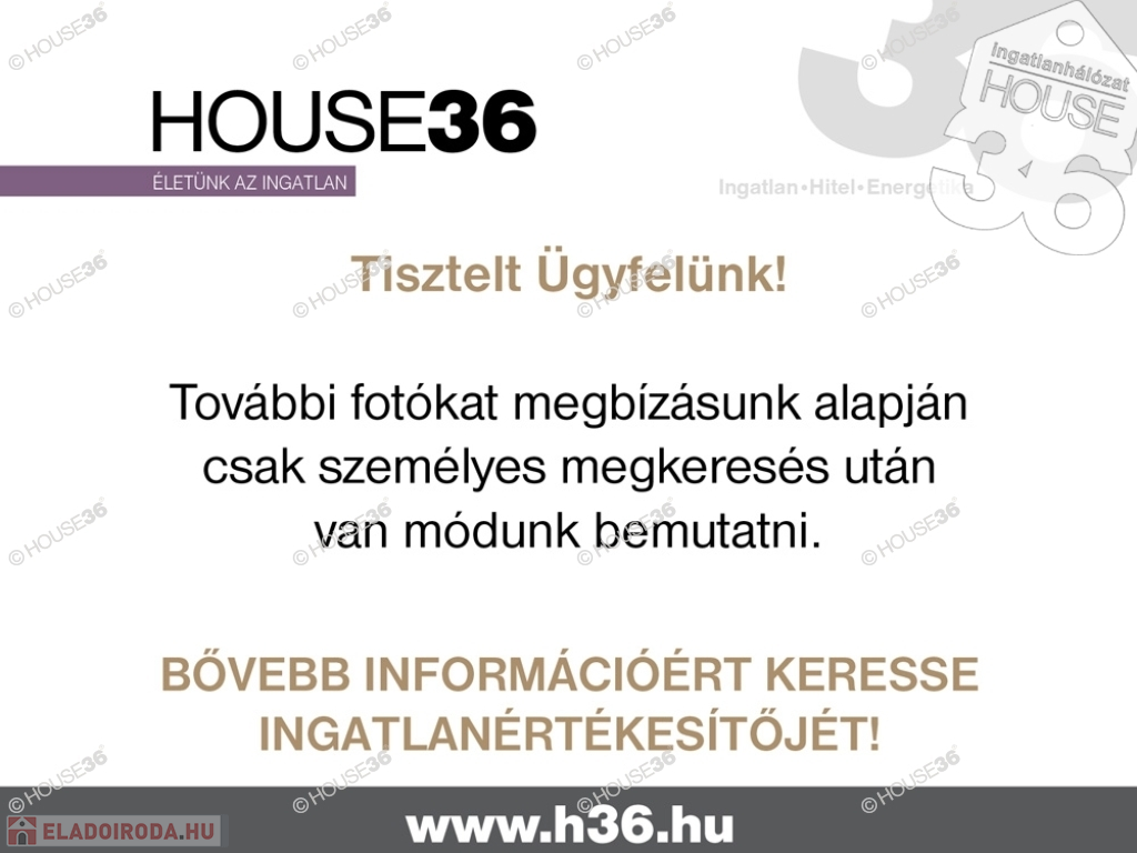 Figyelem az adatlap megbízóinktól kapott adatok alapján készült, pontosságáért felelősséget nem tudunk vállalni!Amennyiben a hirdetés felkeltette érdeklődését, illetve eladó, vagy kiadó ingatlana van, forduljon hozzám bizalommal. Szolgáltatásaink kereső ügyfeleink részére díjmentesek!A tulajdonos kérésére az ingatlan bemutatása egy személyes konzultáció után történik, ahol részletes tájékoztatást kaphat az ingatlan paramétereiről és dokumentációjáról.