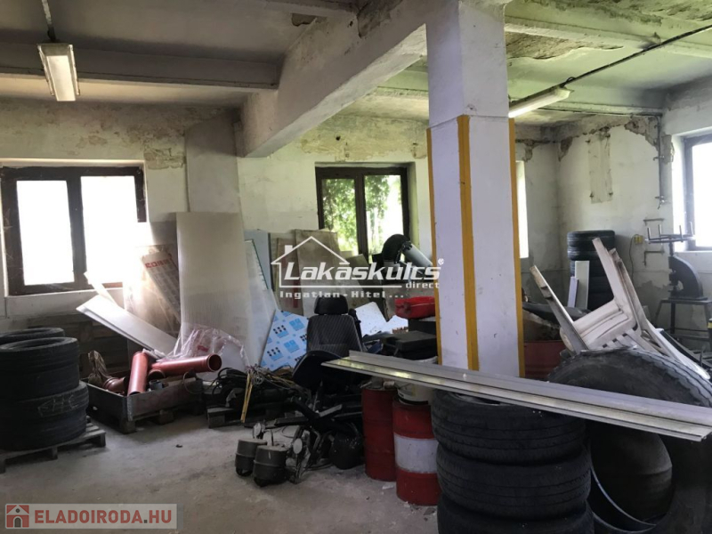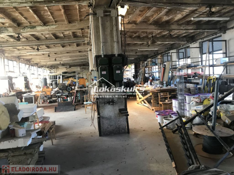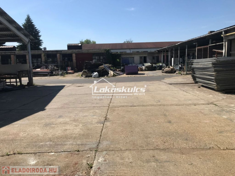 Külön 280 m2-es épületben (földszint+emelet) vannak az irodák és a szociális helyiségek. Az épületek között és körül kamionnal is járható 4.500 m2-es betonozott terület van.