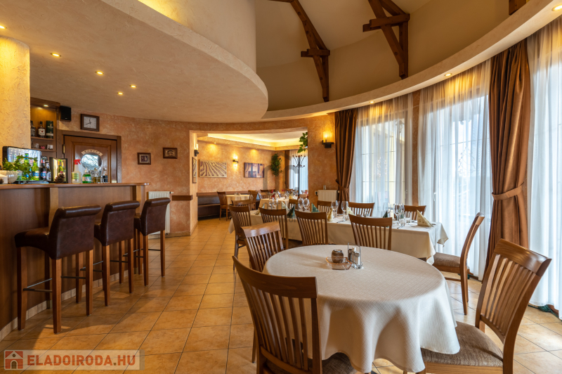 Az ingatlan földszinti részén szakmailag elismert, igényes 50-60 fő befogadására alkalmas étterem mű-