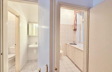 Az iroda két legnagyobb alapterületű helyisége (~50 nm), négy nagyméretű ablakkal, és a bejárati ajtóval együtt, az utcafront felé néz, a külön mosdó és az ablakos étkezős konyha a belső udvar felé került kilakatásra.