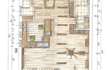 Az utcafront felőli részhez egy nagyméretű üvegportál kapcsolódik, amely bőséges természetes fényt enged be – így a tér egész nap barátságos és inspiráló.