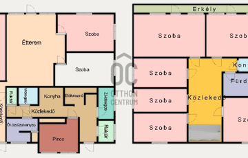 -gáz, a főépület központi gáz cirkó fűtésű radiátorokkal, az összes kiadható lakóegység + hűtő-fűtő klímákkal van felszerelve. (9 db)