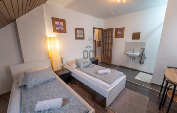 Az emeleti szint vendégházként üzemel. 6 db lakóegység található benne.