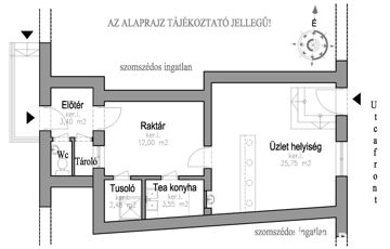 - Üzlethelyiség: ~26,00 m2 (alatta pince)